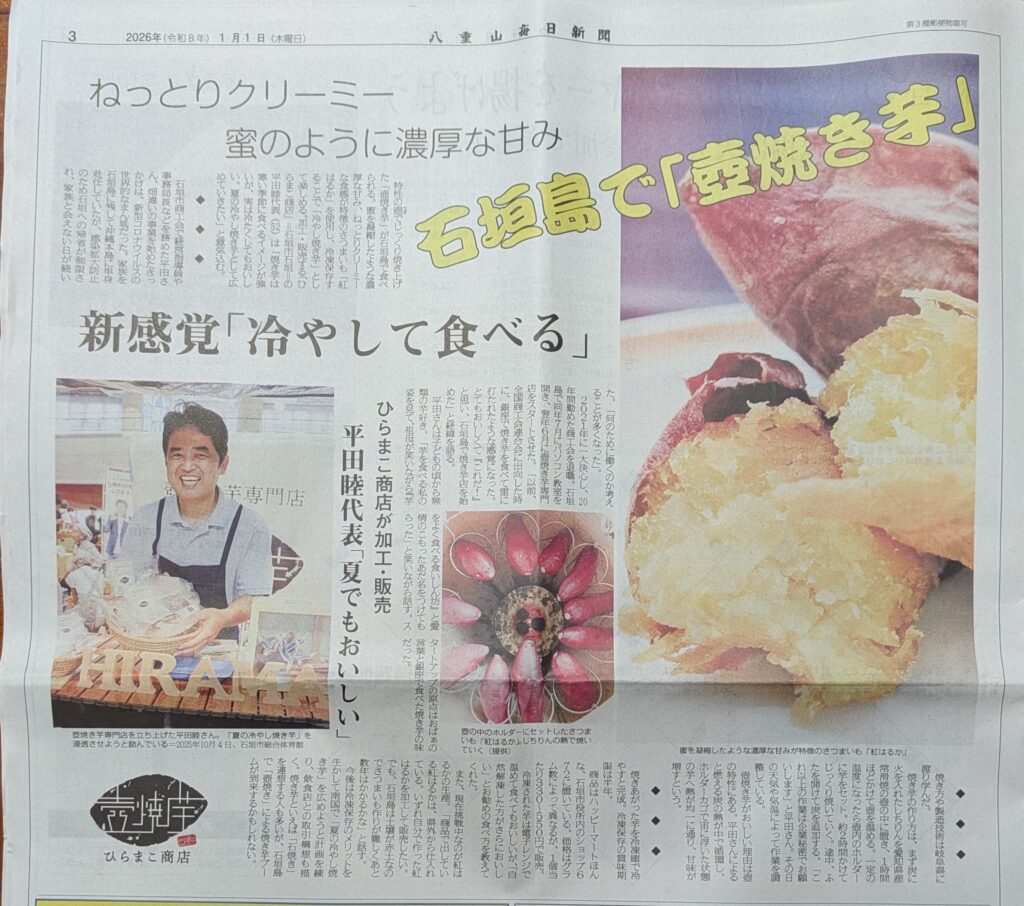 八重山毎日新聞の新年号に掲載されました!「冷やして食べる」新感覚の壺焼芋を石垣島から